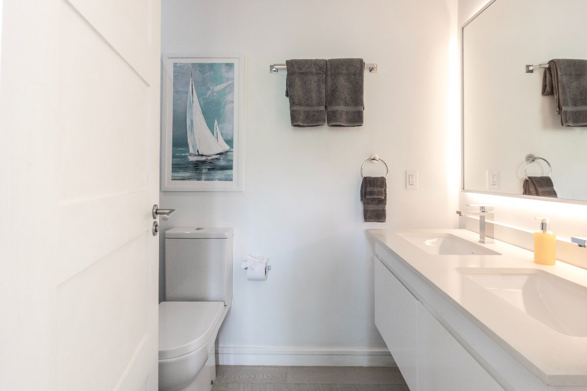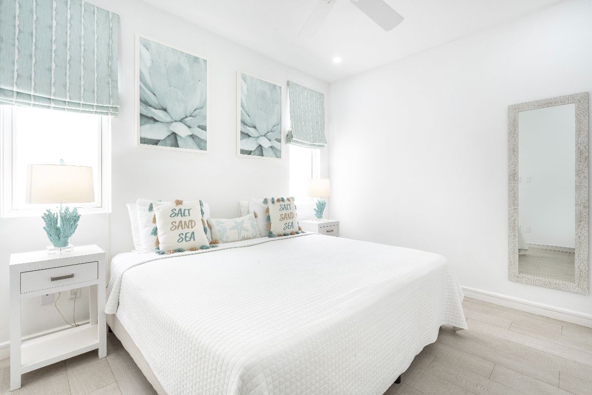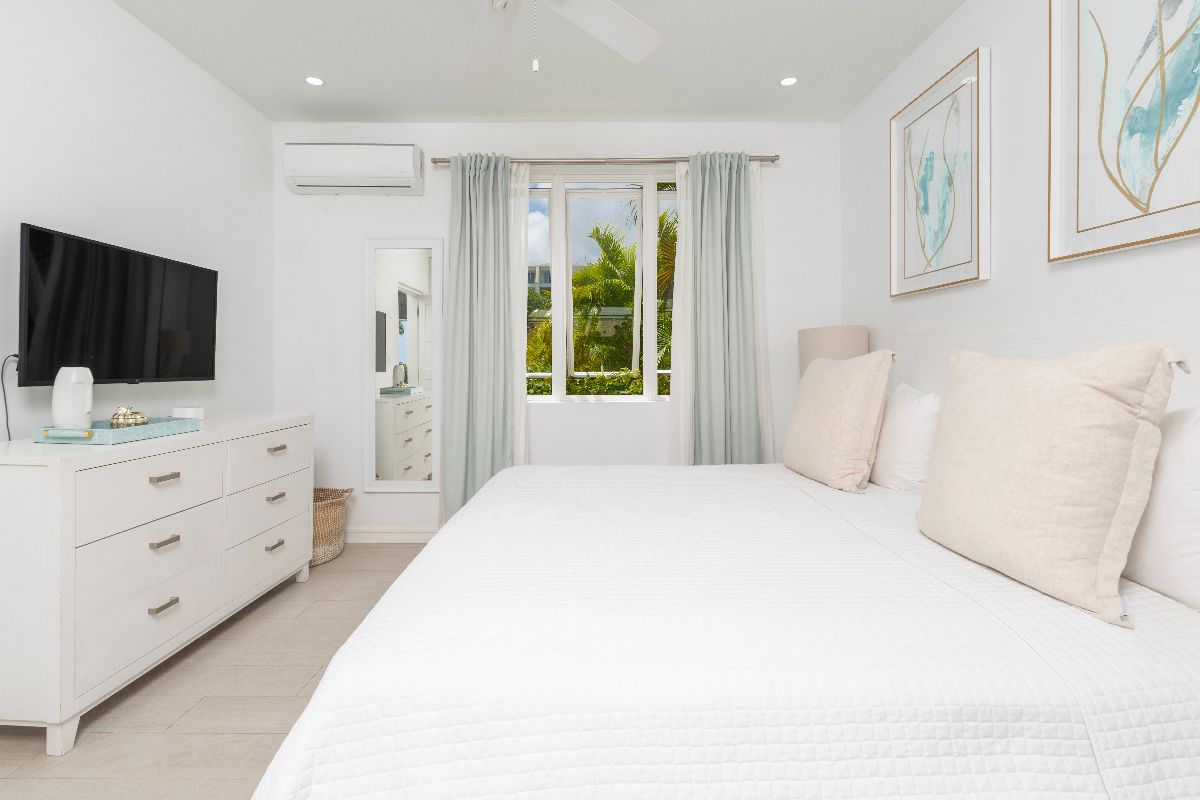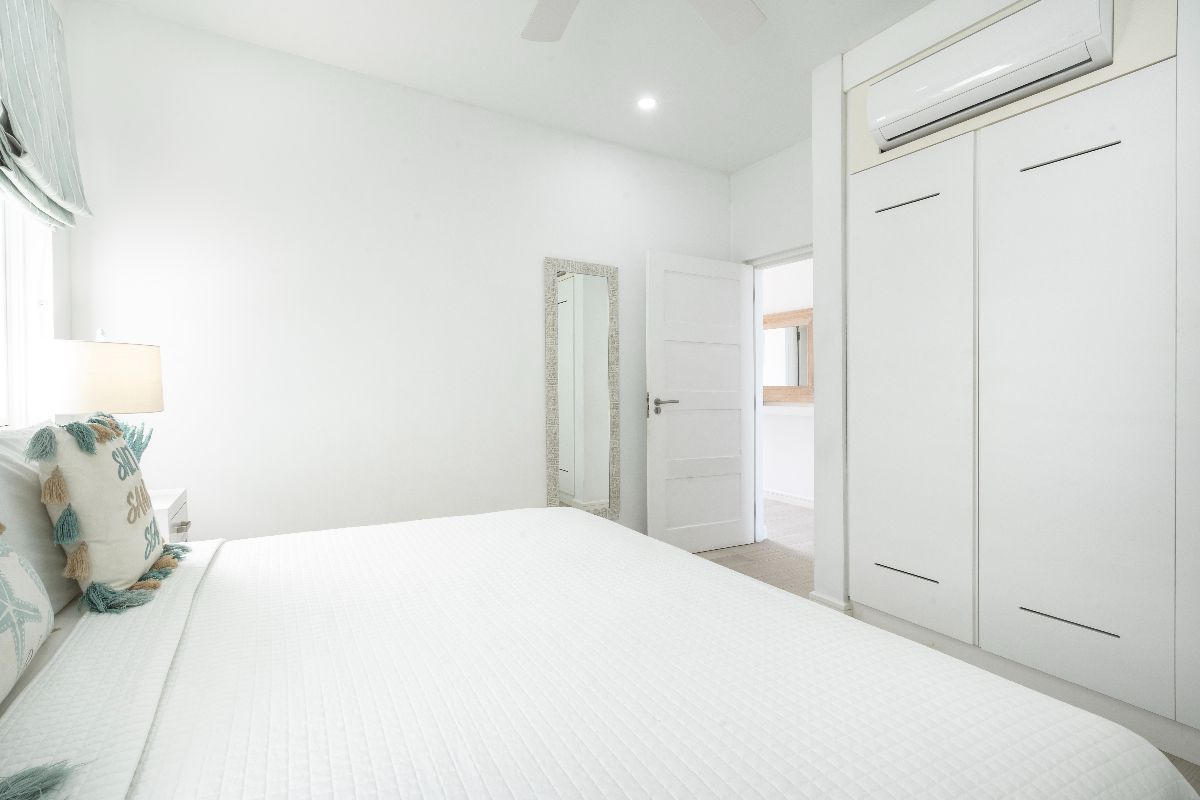 The villa features three well-appointed, air-conditioned bedrooms, each designed for comfort, practicality and style. The primary bedroom includes a spacious king-size bed and an en-suite bathroom. This room is decorated with modern accents and offers plenty of storage, creating a calming retreat at the end of the day.