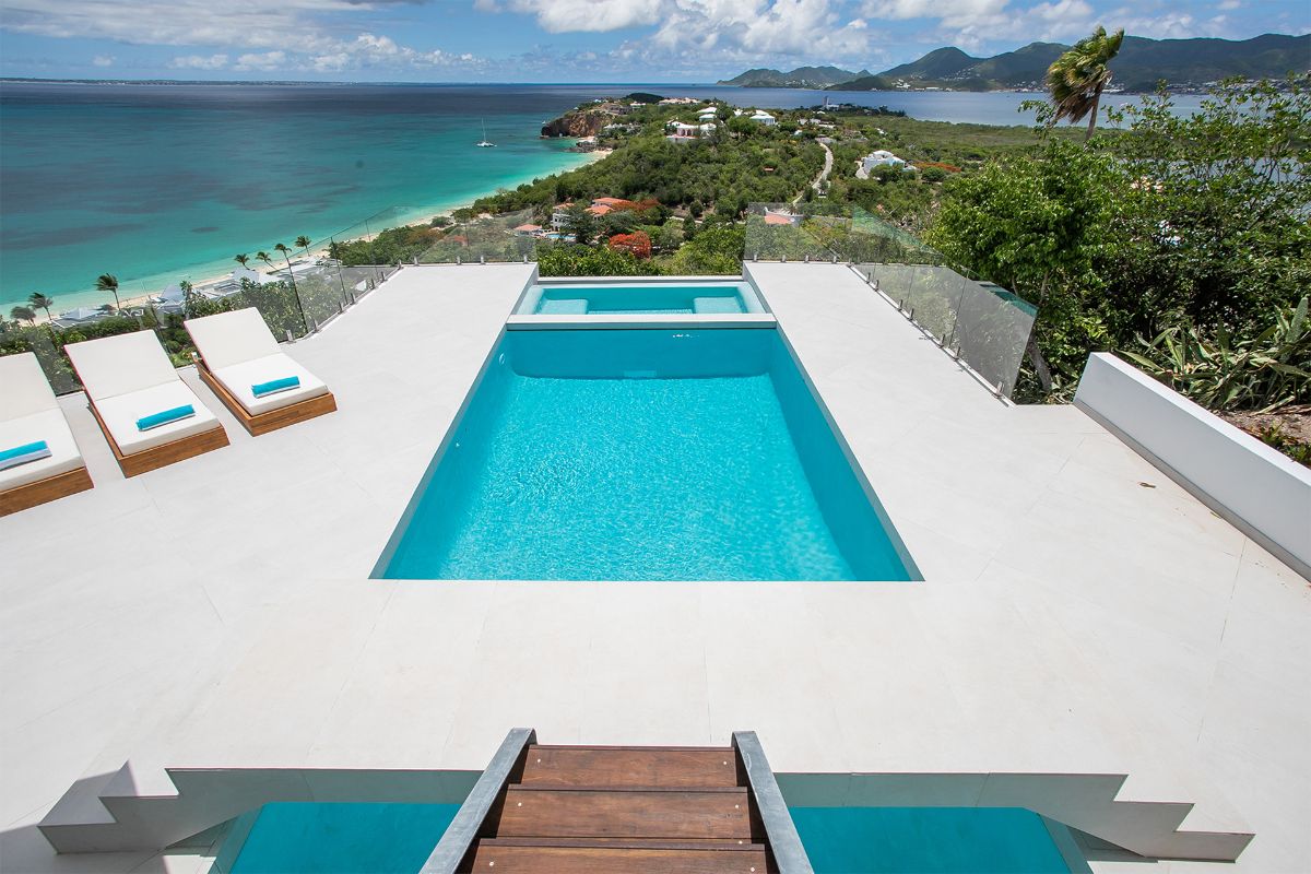Located in the prestigious enclave of Terres Basses, St. Martin, Villa Aqua Rock occupies a prime cliffside position offering unmatched panoramic views of Baie Rouge Beach and the endless Caribbean horizon. This exclusive residential area is known for its tranquility and privacy, while still being just minutes away from the island’s finest dining, shopping, and nightlife in Marigot and Cupecoy. From sunrise to sunset, guests can witness the ocean’s changing hues, watch boats drift across the bay, and enjoy the twinkling lights of Anguilla at night—all from the comfort of their terrace.