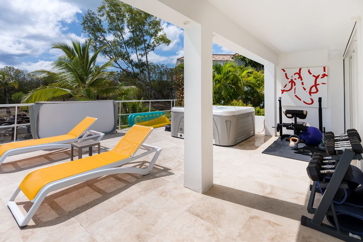 Step outside and experience the heart of Caribbean living. The terrace offers a variety of lounging and dining areas surrounded by lush greenery, creating an inviting atmosphere for both sun-soaked afternoons and starlit evenings. Whether you’re savoring a morning coffee overlooking the sea or watching the sunset from the comfort of a chaise lounge, every corner of the outdoor space is designed for relaxation and connection with nature.