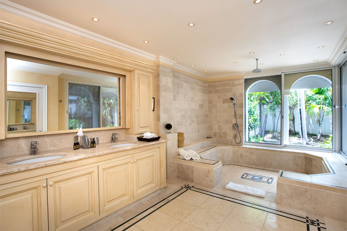 The heart of Beaulieu is its remarkable 50′ x 20′ heated pool, one of the largest private pools on the island. Positioned perfectly to capture uninterrupted ocean views and cooling breezes, the pool area invites guests to unwind and enjoy the beauty of the Caribbean. Whether relaxing on a lounger, enjoying an alfresco meal, or simply gazing at the horizon, every moment spent outdoors feels timeless. The surrounding terrace and gardens are peaceful and private, creating a seamless transition between land and sea.
