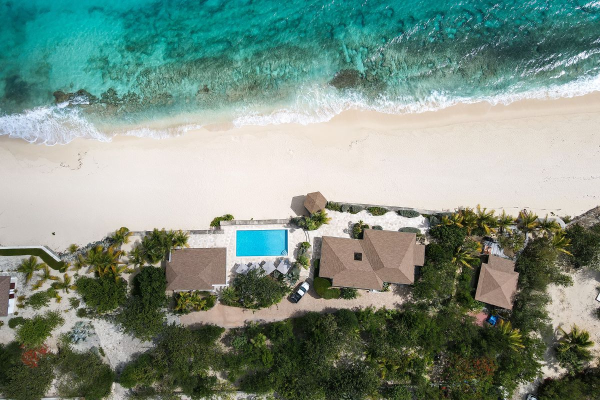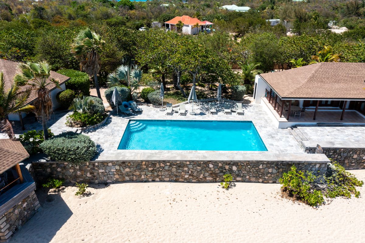 A low coral stone sea wall lined with silver buttonwood trees and palms separates the terrace from the sandy beach below. Whether you’re taking a morning dip in the pool, dining al fresco under the shaded verandah, or lounging in the sun with the ocean breeze on your skin, every moment outdoors feels like a dream come true.