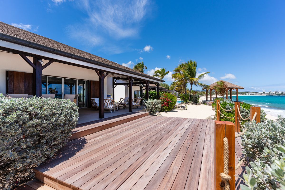 Blue Beach is a stunning seaside villa that perfectly captures the essence of Caribbean charm and luxury. Sitting gracefully above the white sands of Baie Longue Beach, this exquisite property offers panoramic views of the turquoise sea and the island of Saba in the distance. The villa’s design blends timeless West Indian style with modern comfort, creating a space that feels both elegant and relaxed. With its coral stone courtyard, lush gardens, and inviting open-air layout, Blue Beach is the ultimate retreat for those who dream of waking up to the sound of the waves and ending each day with a glowing sunset over the ocean.