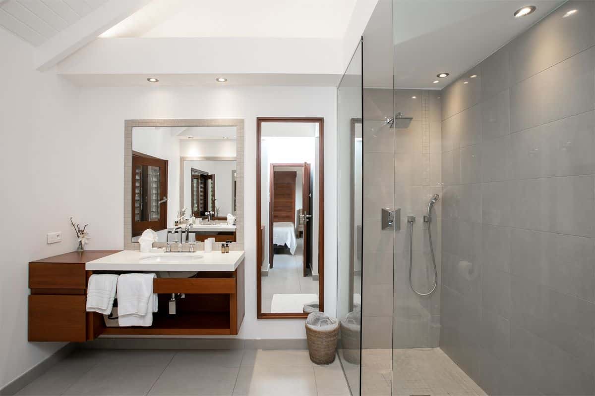 The villa’s layout creates an effortless connection between indoor and outdoor living. Deep covered verandahs provide shaded dining and lounge areas, perfect for enjoying casual breakfasts or romantic dinners by the sea. Every corner of Blue Beach is designed to enhance the natural surroundings, allowing guests to feel immersed in the beauty of the Caribbean coast.