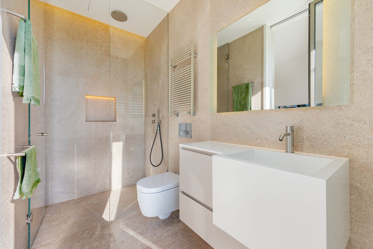 The villa features four large, comfortable bedrooms and four modern bathrooms, offering plenty of space for guests to spread out. One of the highlights is the spacious primary bedroom, which comes with a stylish en suite bathroom featuring a freestanding bathtub and a walk-in shower. The remaining three bedrooms are also generously sized and have access to their own bathrooms, making the property well suited for both families and groups of friends.