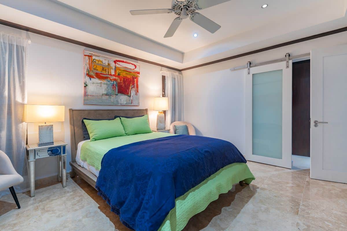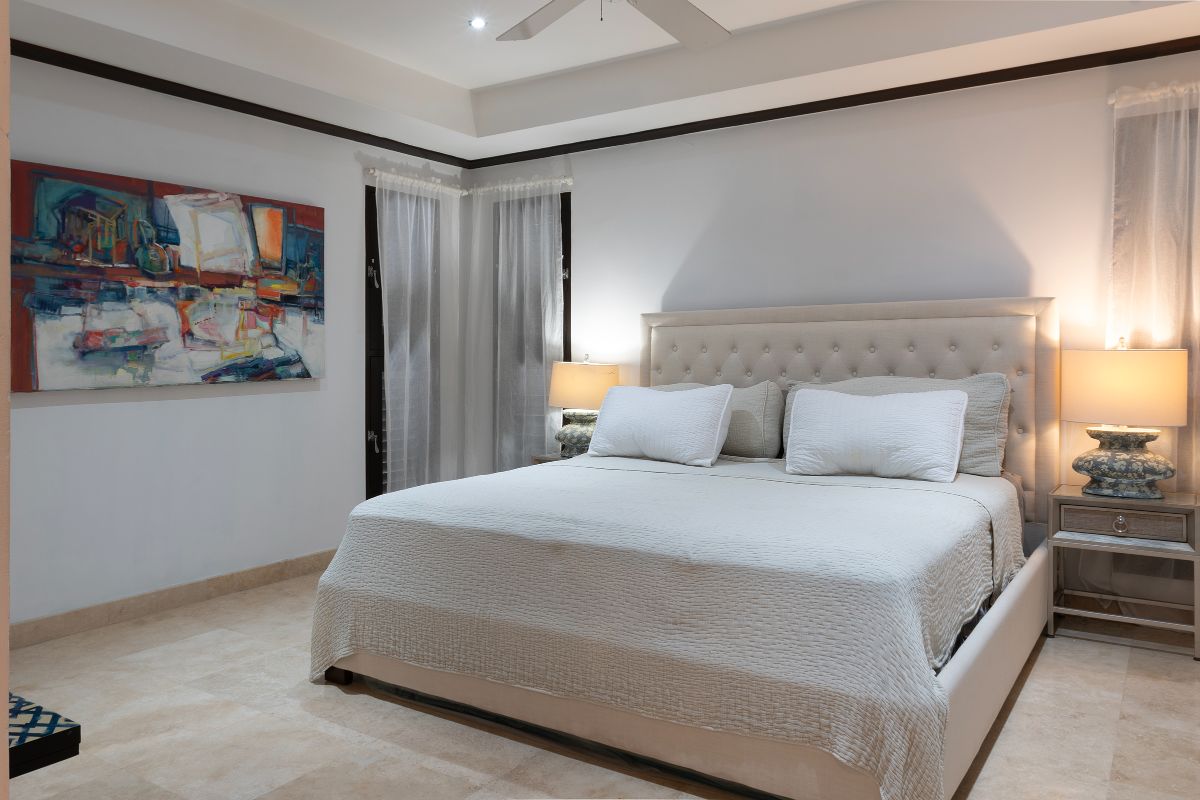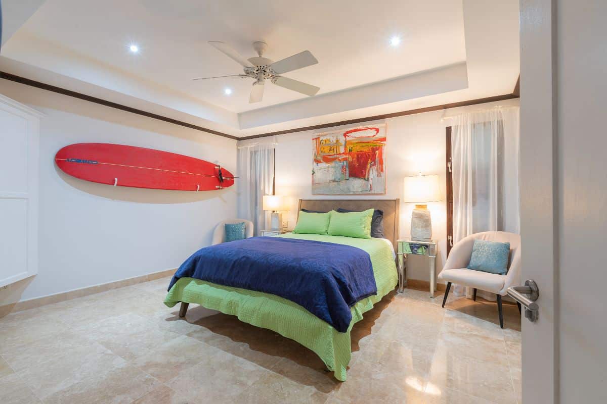 Bedrooms two and three are equally well designed, each with en-suite bathrooms that ensure comfort and privacy for all guests. Ceiling fans and air conditioning throughout the bedrooms provide a cool and comfortable environment year-round.