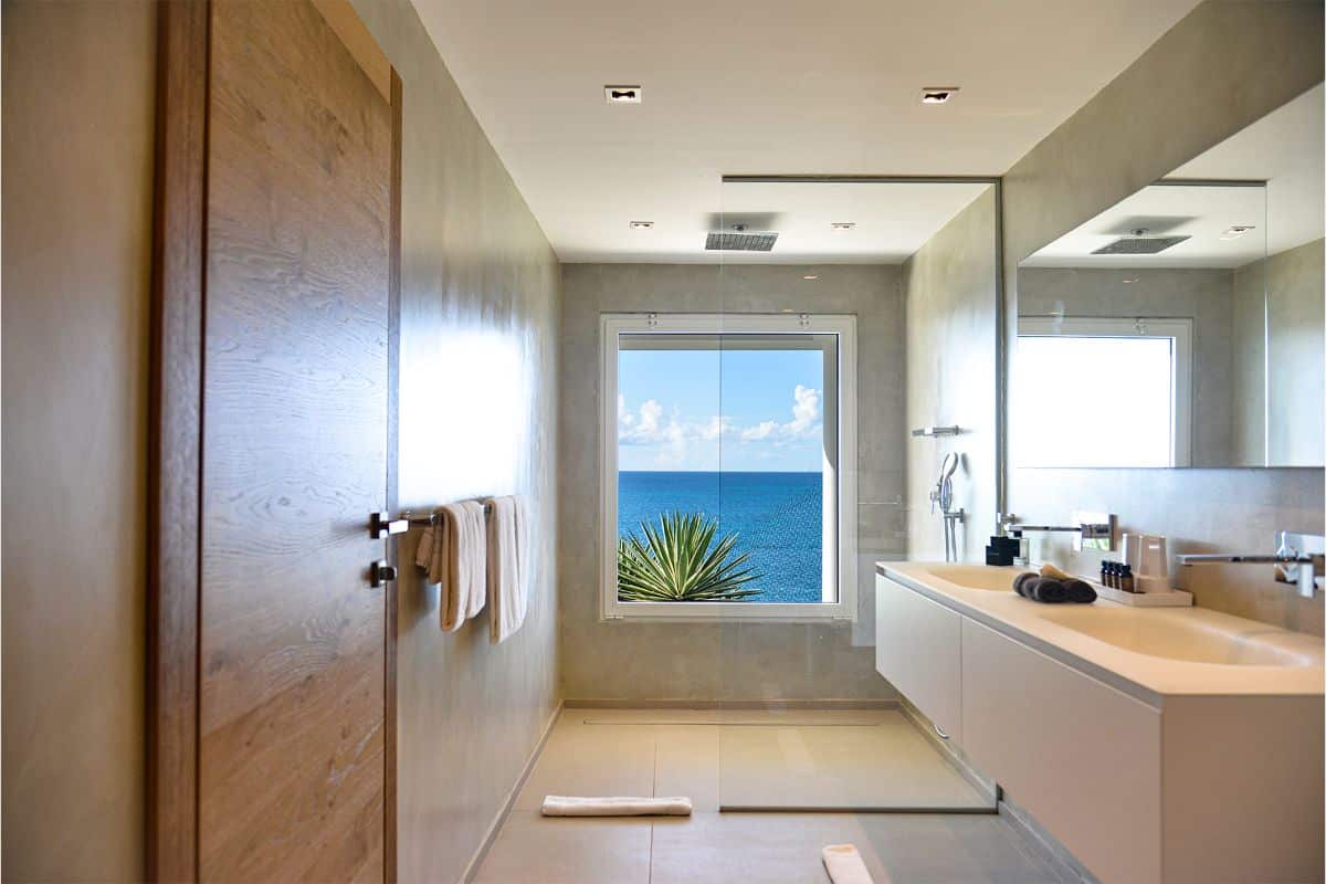 All bedrooms are equipped with king-size beds, double-vanity ensuite bathrooms, and walk-in closets. The spa-inspired bathrooms feature rain showers and windows that open to the sea, allowing you to connect with nature in complete serenity. The external access to each room ensures privacy while keeping the main living spaces within easy reach.