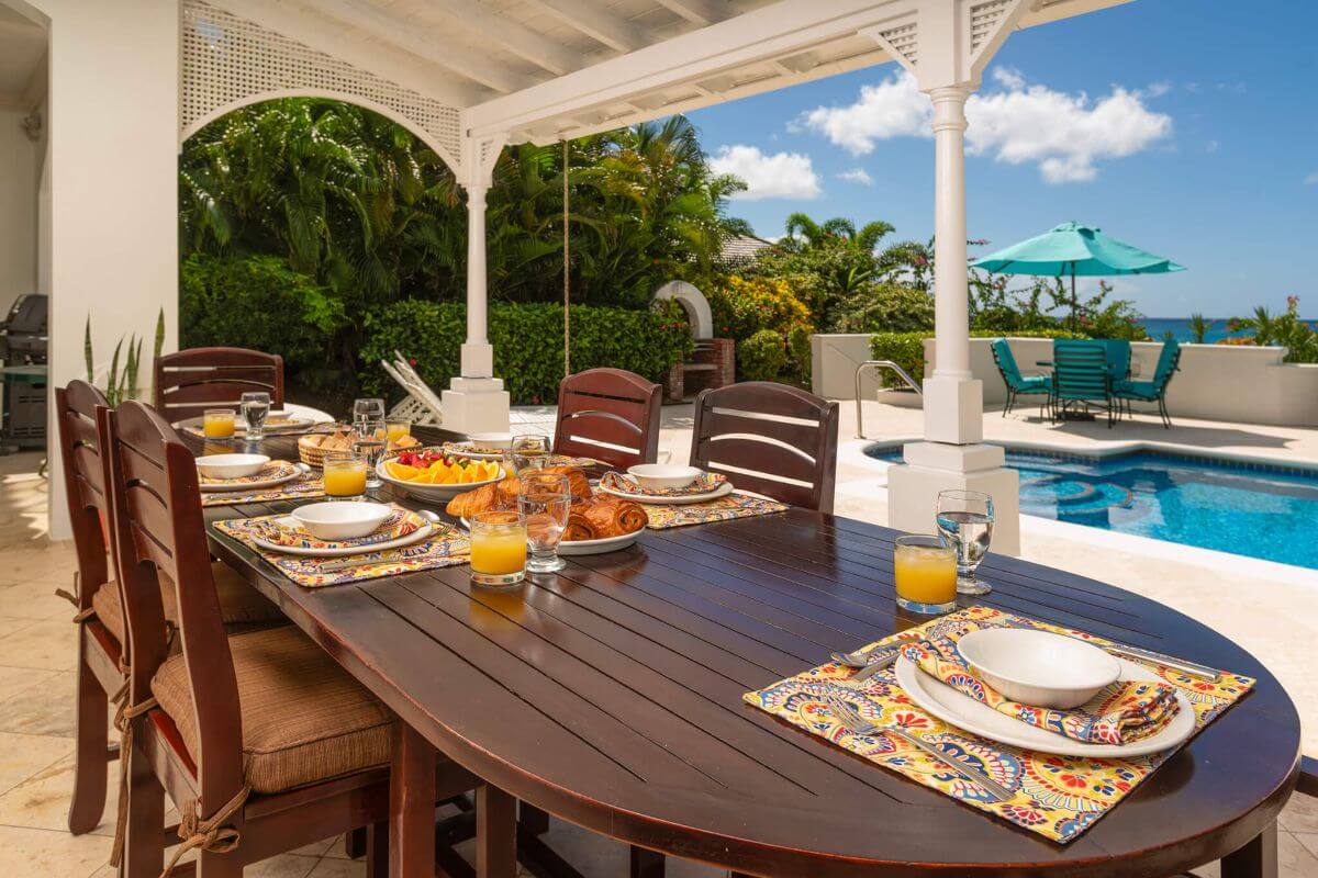 A covered terrace provides the perfect setting for outdoor dining, where guests can savour freshly prepared meals while watching the sun set over the Caribbean. With the beach just steps away, guests can move easily between poolside relaxation and seaside strolls, accompanied by the gentle sound of the waves.