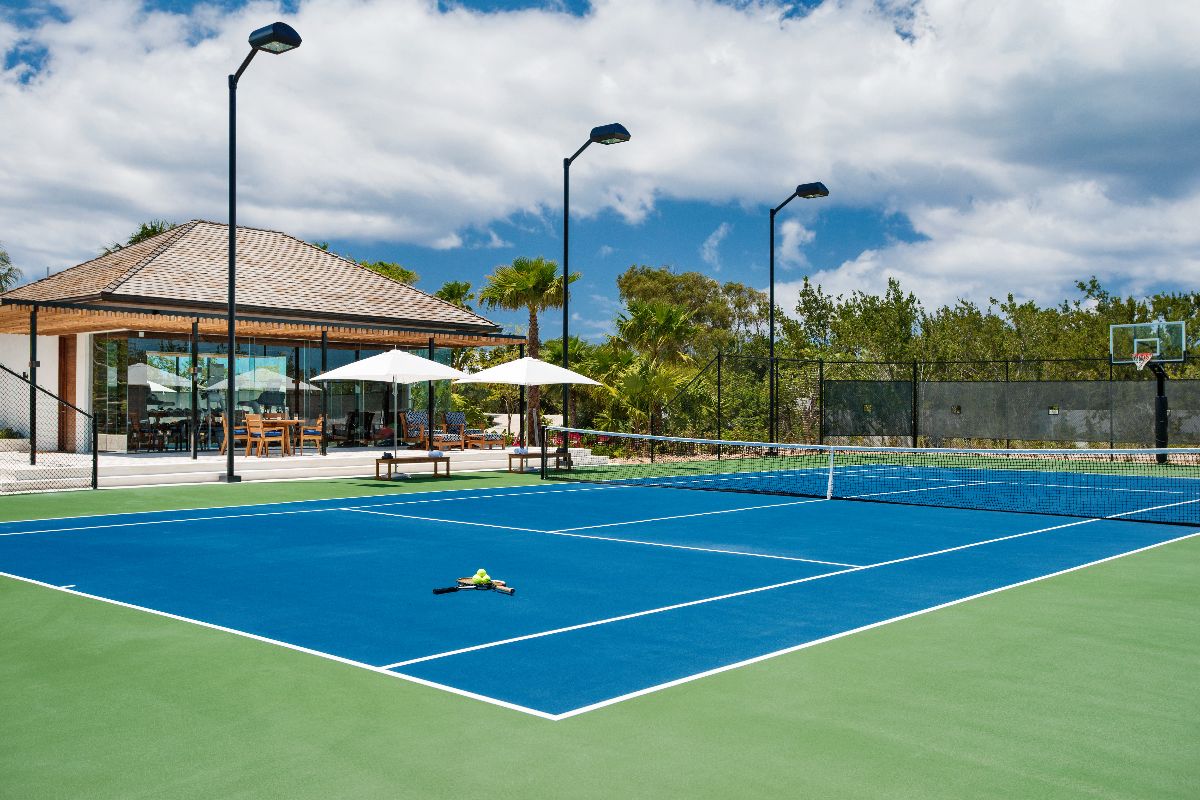 In addition to the dual pools and hot tub, guests can enjoy a full suite of sports facilities, including tennis, pickleball, a half basketball court, and beach volleyball. The private dock, along with paddleboards, kayaks, and snorkelling gear, opens up endless opportunities to explore the surrounding waters.