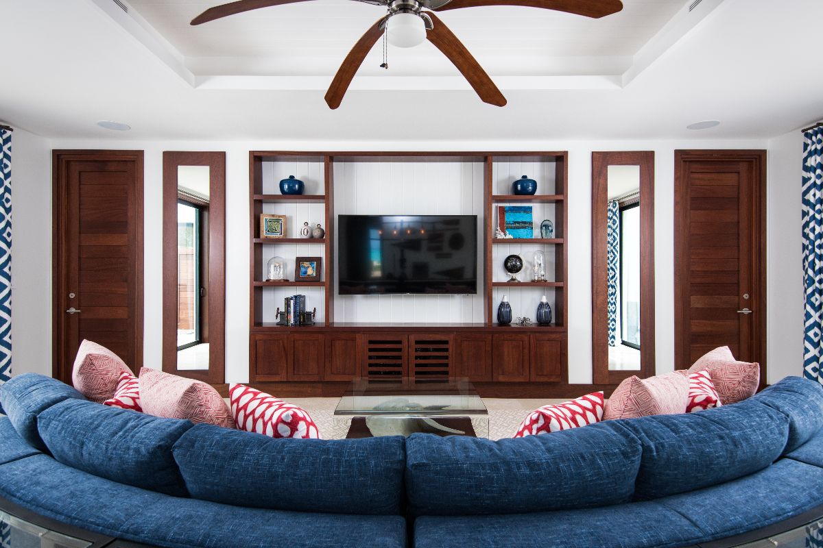 The interiors are designed to support both large gatherings and relaxed downtime. A dedicated media room with indoor shuffleboard provides a fun and informal space for entertainment, while Smart TVs, Apple TV, high-speed Wi-Fi, and a whole-home sound system ensure modern comfort throughout.