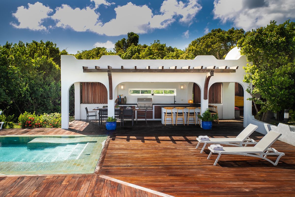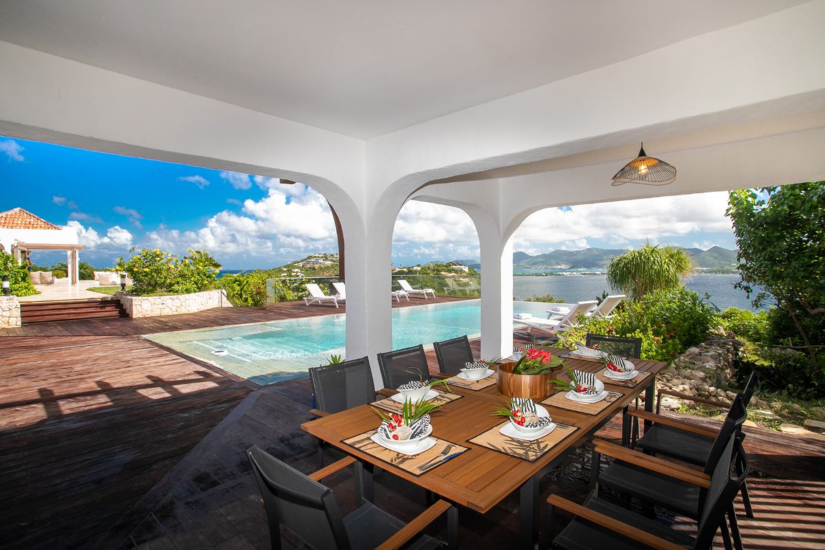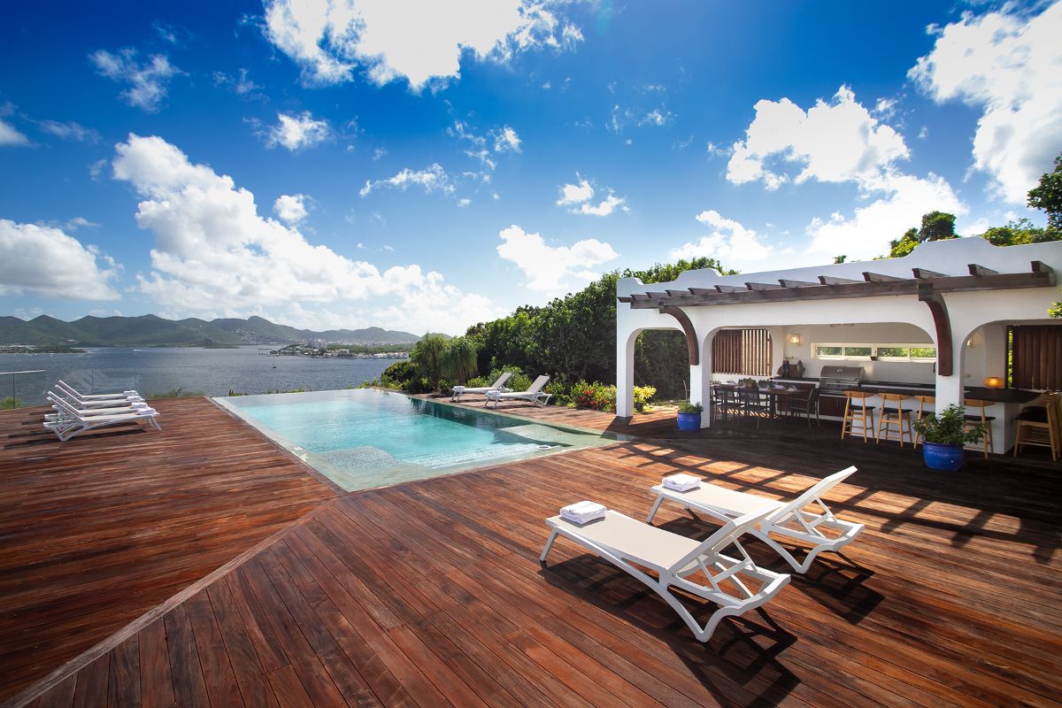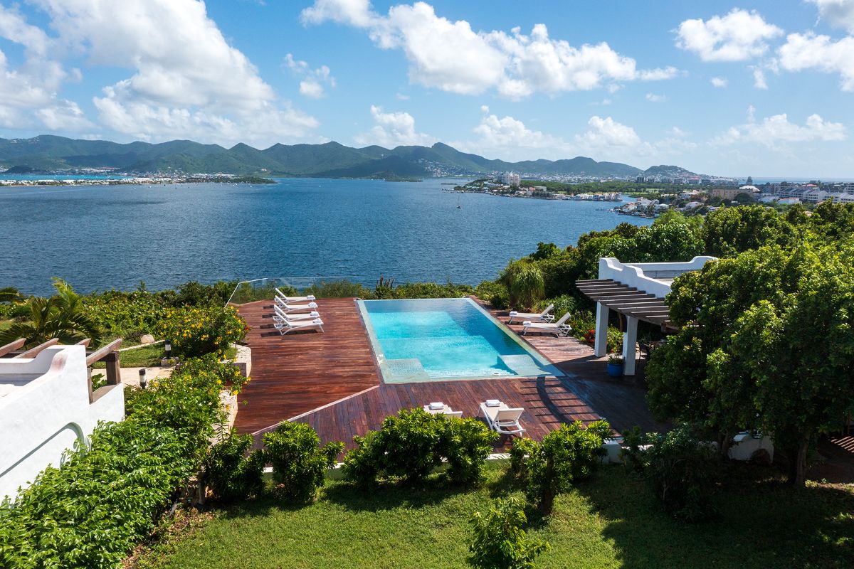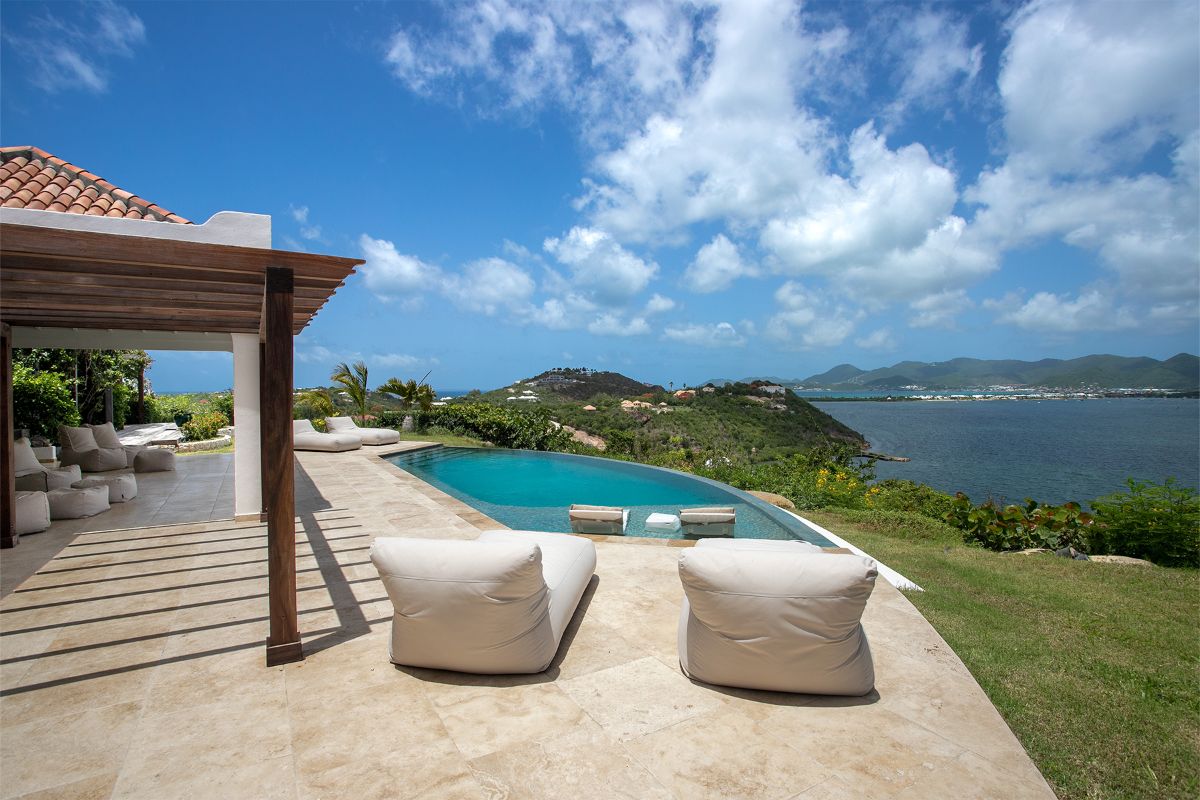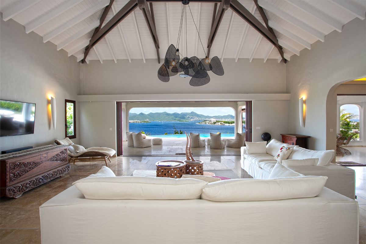 La Vue Folle, meaning “a crazy sight,” truly lives up to its name. This extraordinary villa captivates with unmatched panoramic views of Simpson Bay Lagoon, framed by the dramatic mountainous backdrop of St. Martin. A unique blend of traditional Moroccan style and modern luxury, the villa enchants guests with its intricate design, expansive spaces, and exceptional amenities. With three exquisite bedrooms, two pools, and both indoor and outdoor kitchens, La Vue Folle offers a distinctive sanctuary for those craving a blend of culture, comfort, and breathtaking natural beauty.