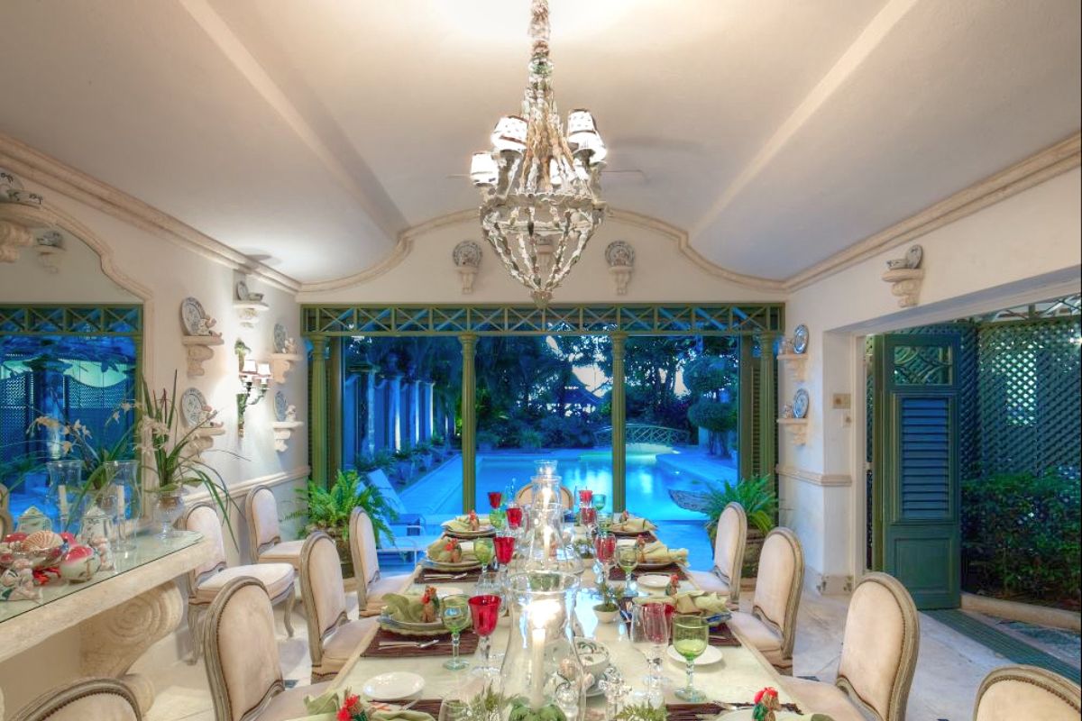 Dining options are equally impressive. Guests may choose to dine in the elegant indoor dining pavilion, centred around a beautiful coral stone table that seats up to fourteen and overlooks the pool and gardens, or enjoy more casual meals outdoors.