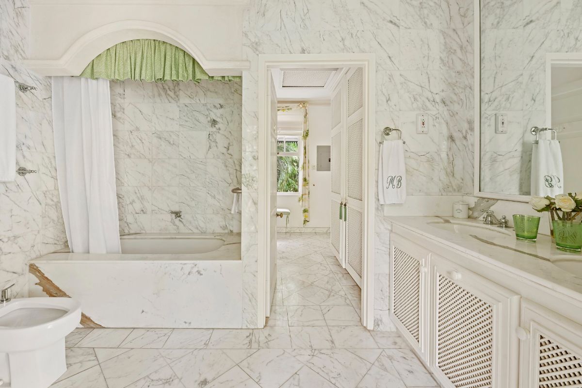The primary suite features two single beds that convert to a king-size bed, a luxurious marble bathroom, remote-controlled air conditioning, and multiple telephone lines. Three additional double bedrooms are located in the main house, each with air conditioning and en-suite bathrooms. A further single bedroom in the main wing is ideal for a teenager or live-in nanny.