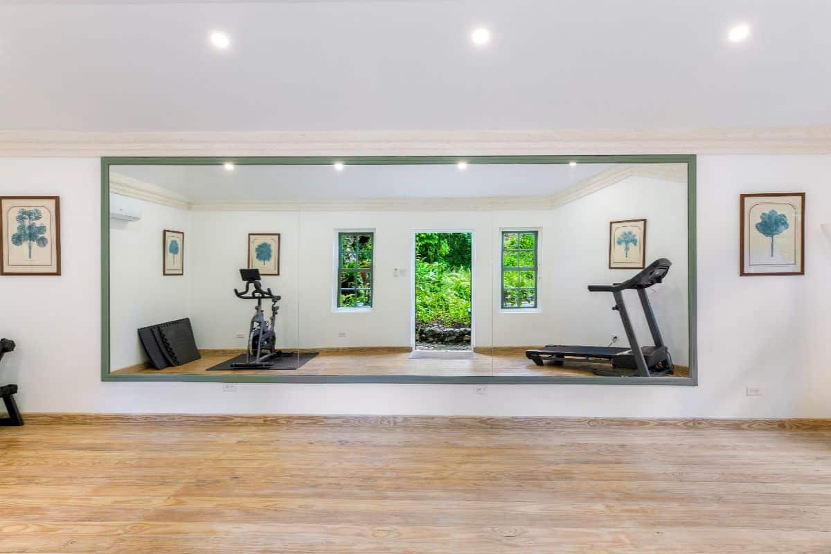 Indoor living at Mango Bay is elegant and welcoming. In addition to the main living room, the villa includes a quiet study equipped with a television, cable TV, DVD player, computer, printer, fax machine, and an extensive library—ideal for relaxation or light work. Communication throughout the property is supported by multiple telephone lines and an internal intercom system.