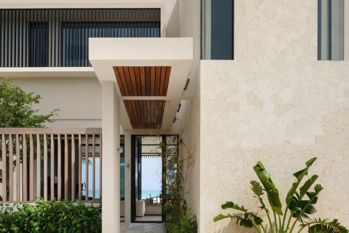 From the moment you enter, the home unfolds seamlessly toward the sea, culminating in a dramatic outdoor terrace anchored by a sleek black lava stone pool — a stunning contrast against the powder-white sand and vivid turquoise waters beyond. The design is both architectural and inviting, blending modern minimalism with warm natural materials to create a space that feels as comfortable as it is visually impactful.