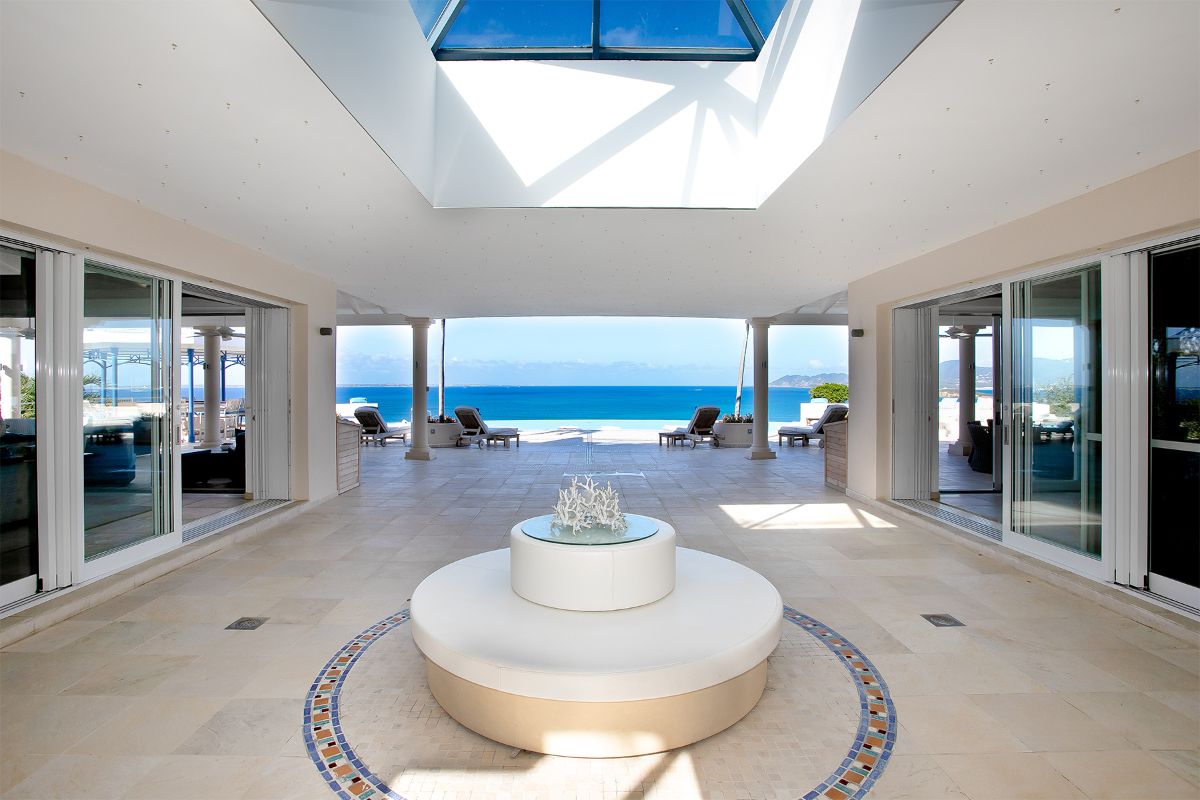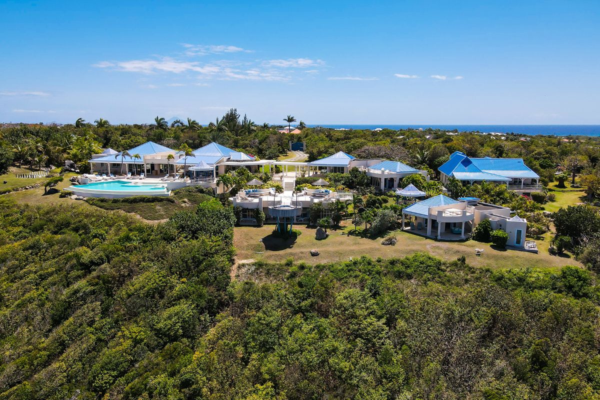 Villa Mes Amis is an expansive private estate located in the exclusive Terres Basses region of Saint Martin. Translating to “my friends” in French, the villa perfectly reflects its purpose as a welcoming and impressive retreat designed for destination events, celebrations, or luxurious group getaways. Set across seven private acres in the scenic Falaise des Oiseaux area, the estate enjoys uninterrupted cliffside views over the Caribbean Sea and the surrounding coastline.