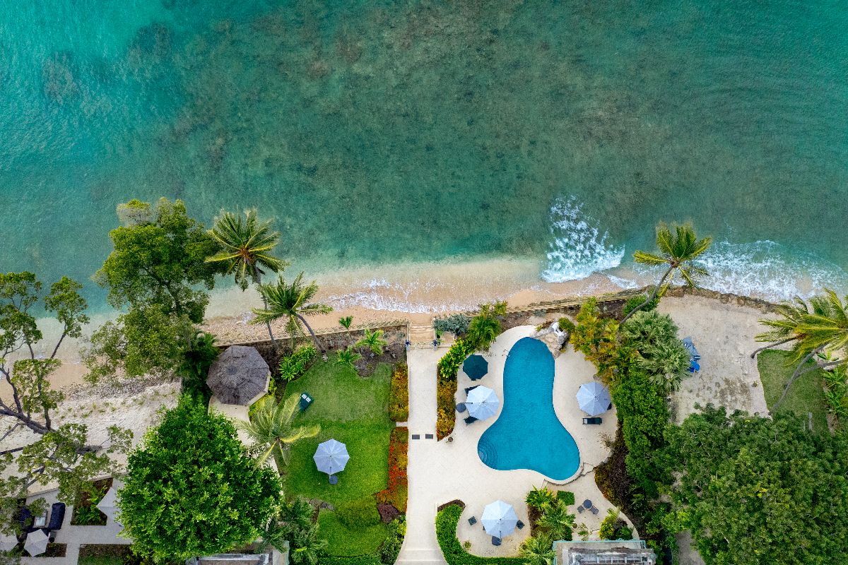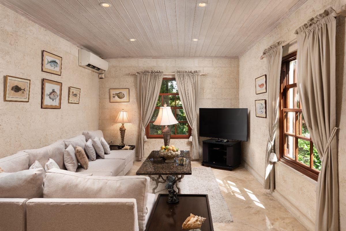 Every bedroom opens onto a private balcony. The four upper-level suites enjoy stunning views of the Caribbean Sea and overlook the secluded tropical gardens and kidney-shaped swimming pool, while the remaining suite is equally generous in size and amenities. This thoughtful layout ensures that every guest has their own peaceful sanctuary.