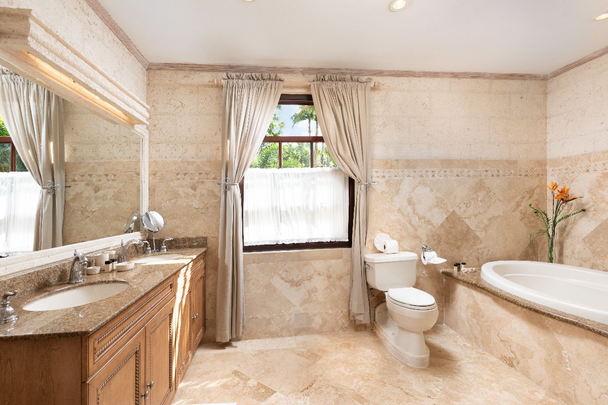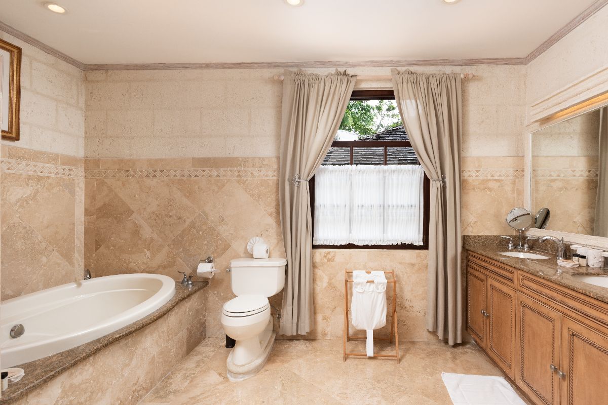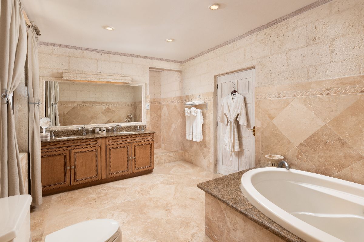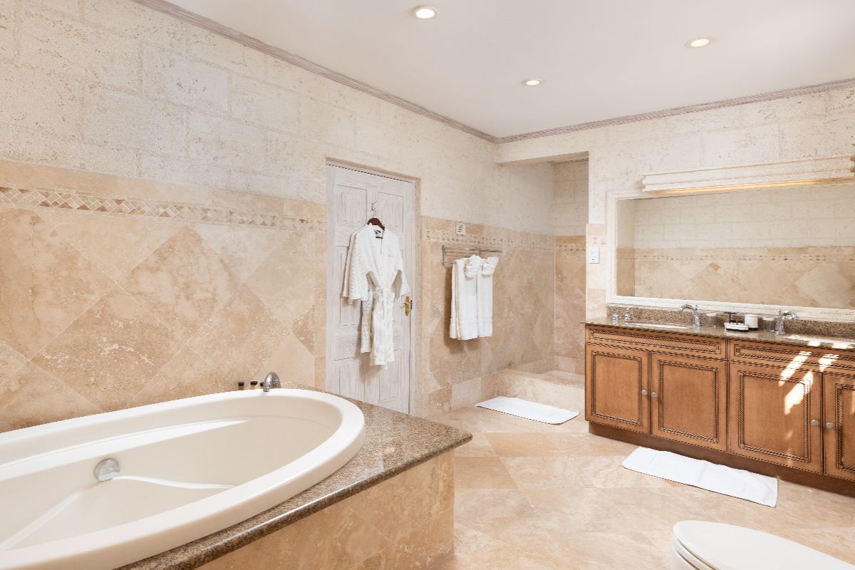 The villa features five spacious and beautifully appointed bedroom suites, each designed to provide maximum comfort and privacy. All bedrooms are air-conditioned and include cable television, a separate dressing room, and an exceptionally large en-suite bathroom with twin basins, oversized bathtubs, and walk-in power showers.