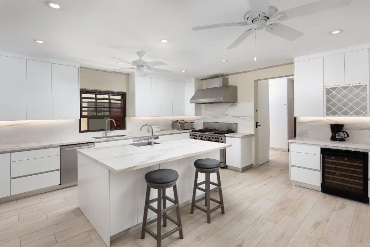 Inside, Moon Reach offers a refined blend of classic Caribbean architecture and elegant contemporary comfort. Formal and informal living areas provide flexibility for entertaining or quiet relaxation. Guests can enjoy candlelit dinners in the formal dining room, casual meals indoors, or relaxed evenings with cocktails at the bar—all accompanied by uninterrupted views of the sea.