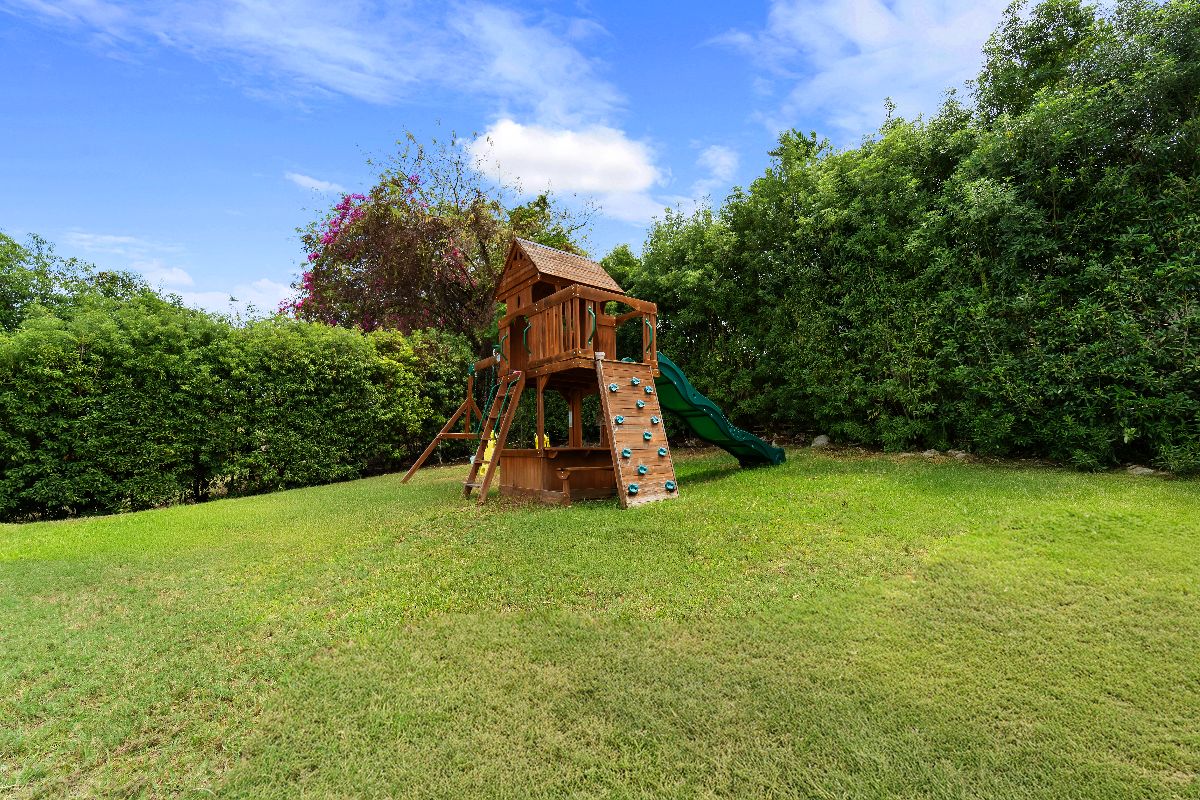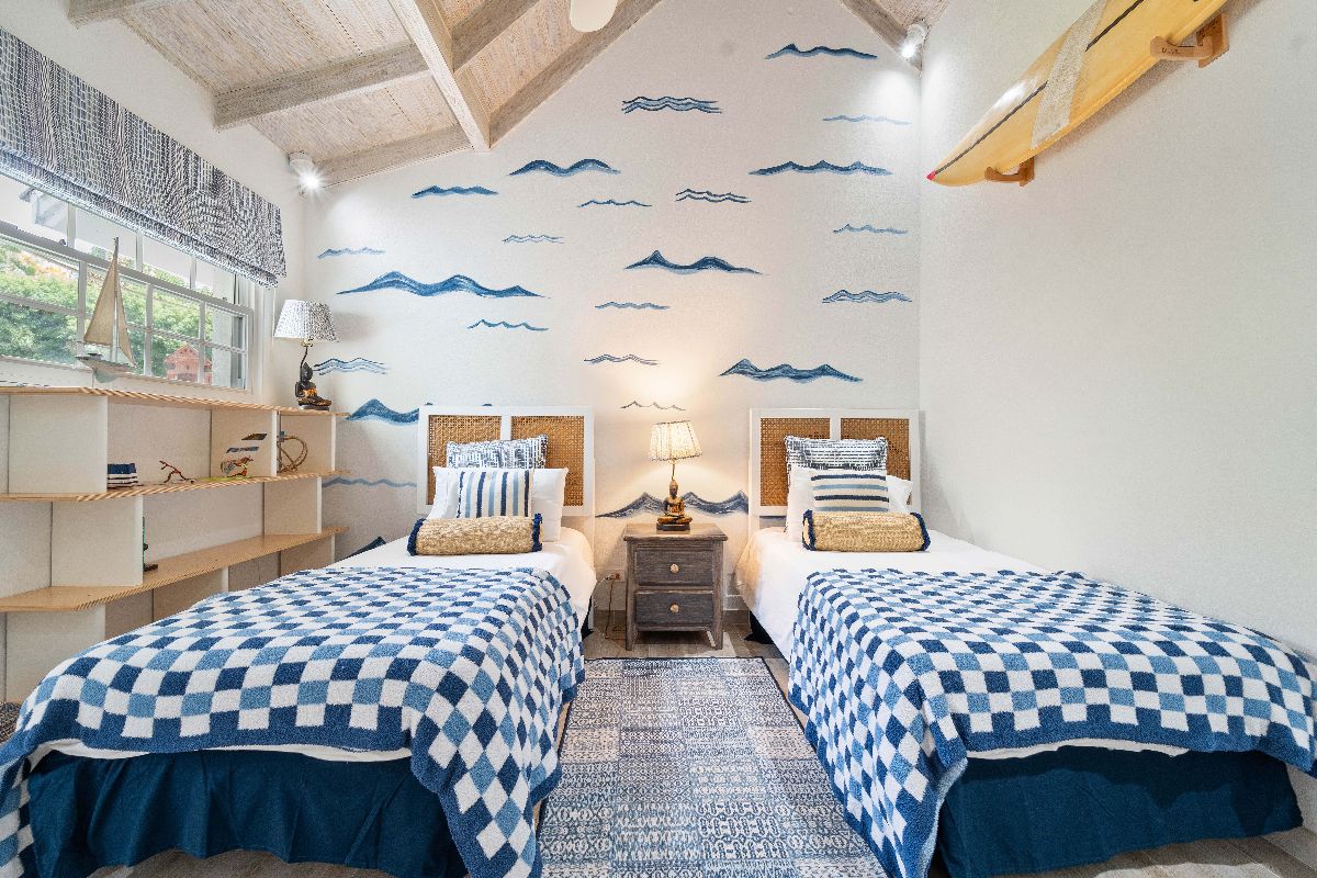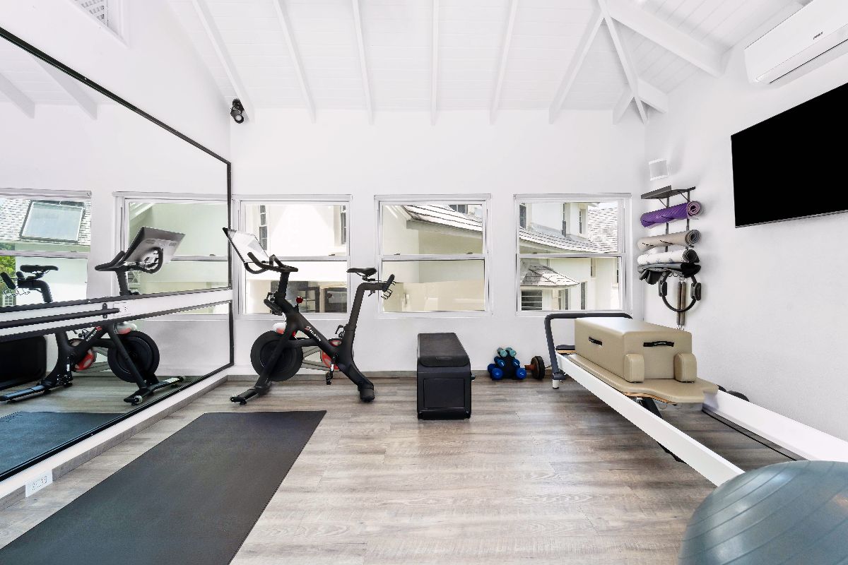 For recreation, the villa offers table tennis, a fully equipped gym with a Peloton bike and Pilates reformer, and an outdoor playground tucked behind the cottage—making it especially appealing for families.