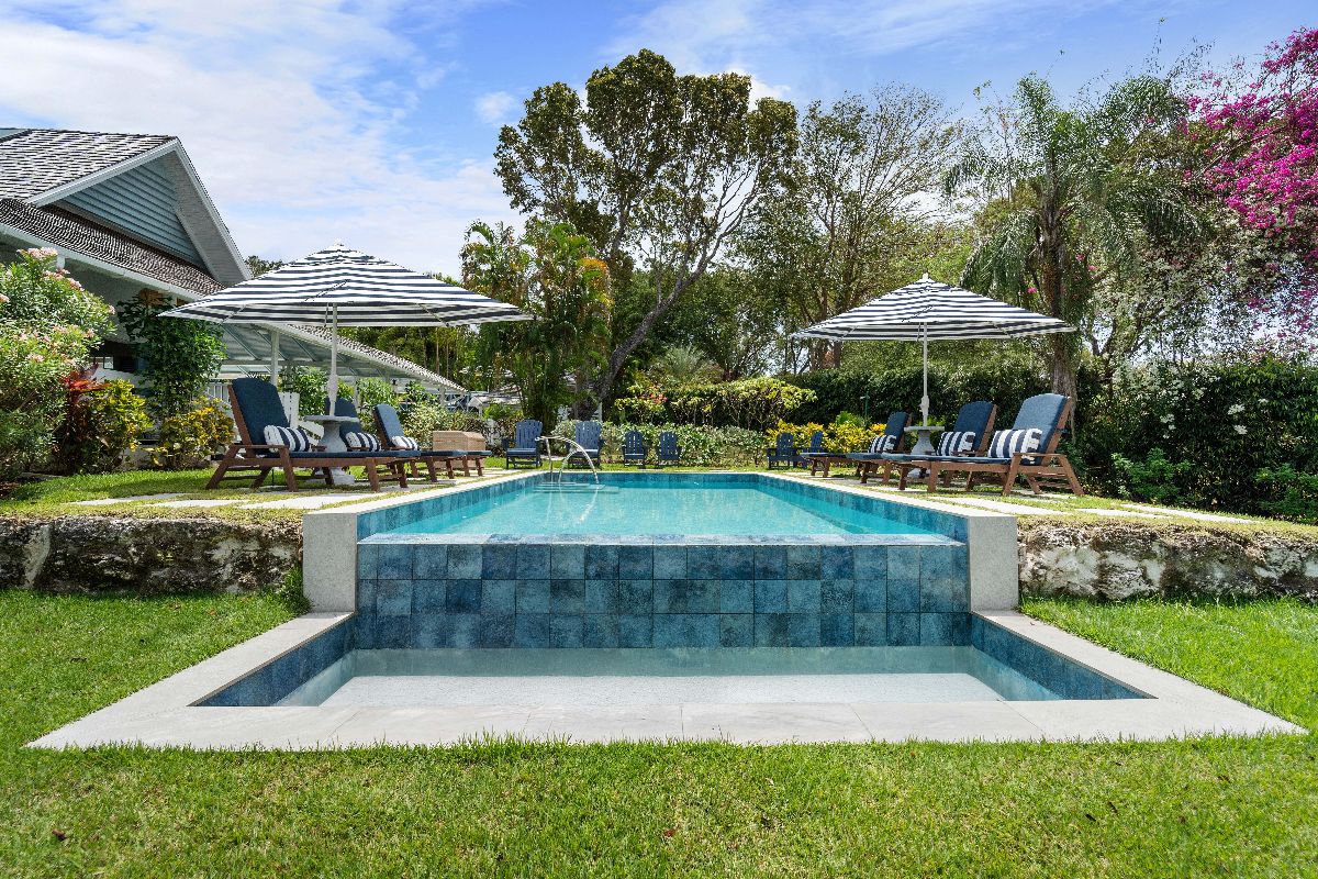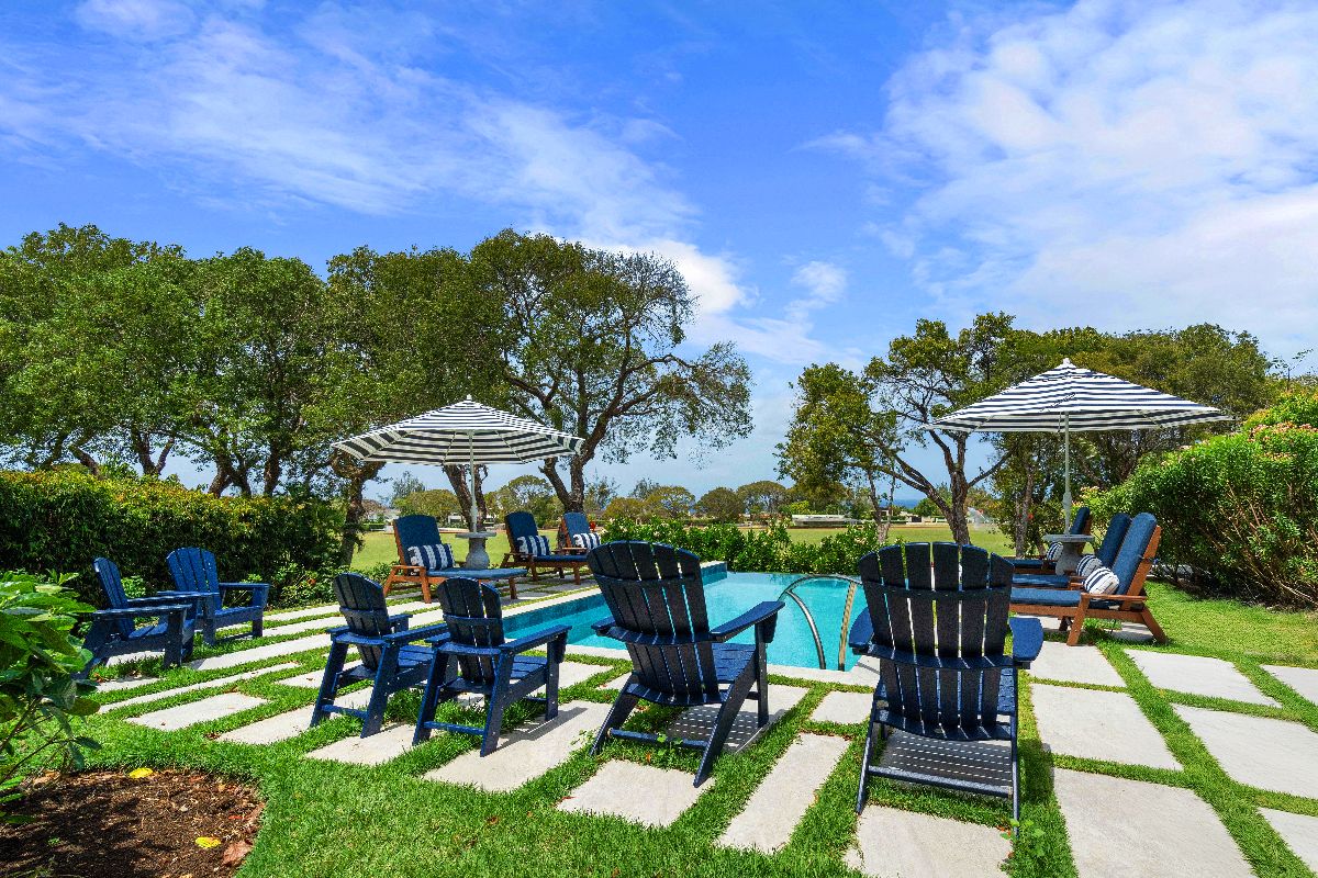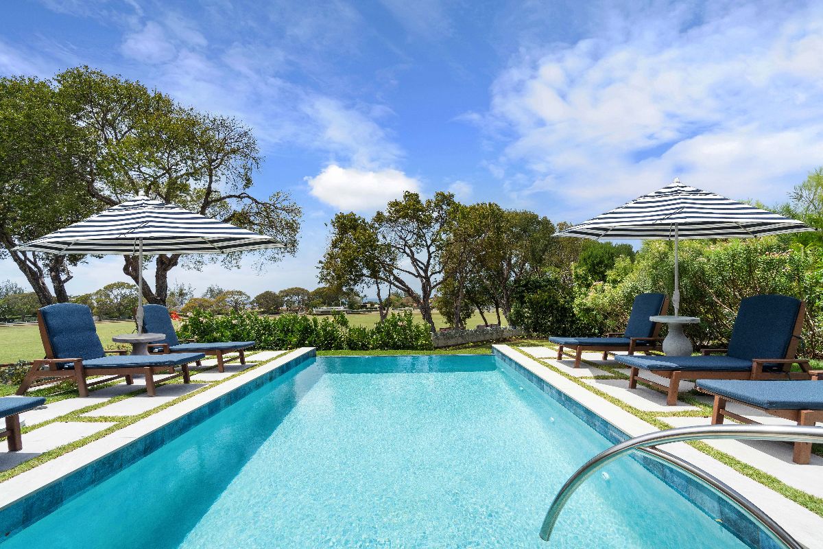 The saltwater pool overlooks the polo field and out to the sea, surrounded by loungers and umbrellas for effortless relaxation. A nearby fire pit creates the perfect setting for enjoying Barbados’ spectacular sunsets.