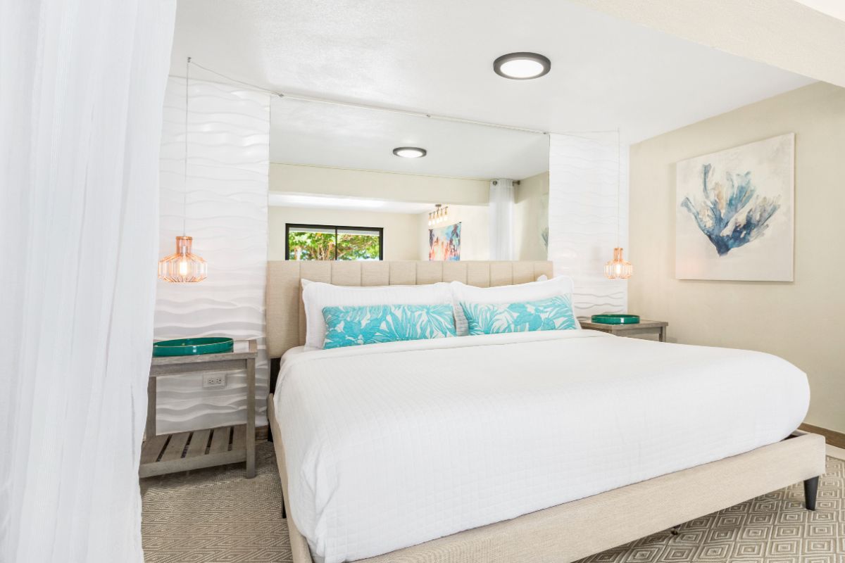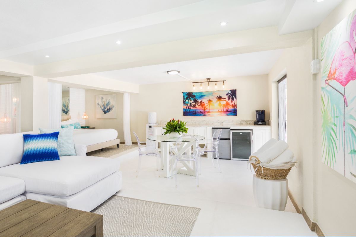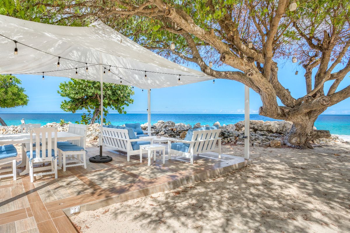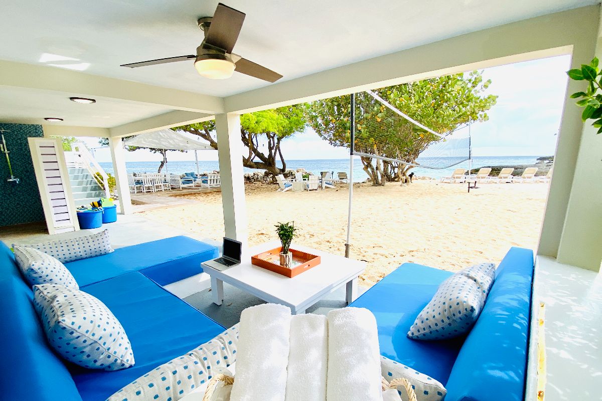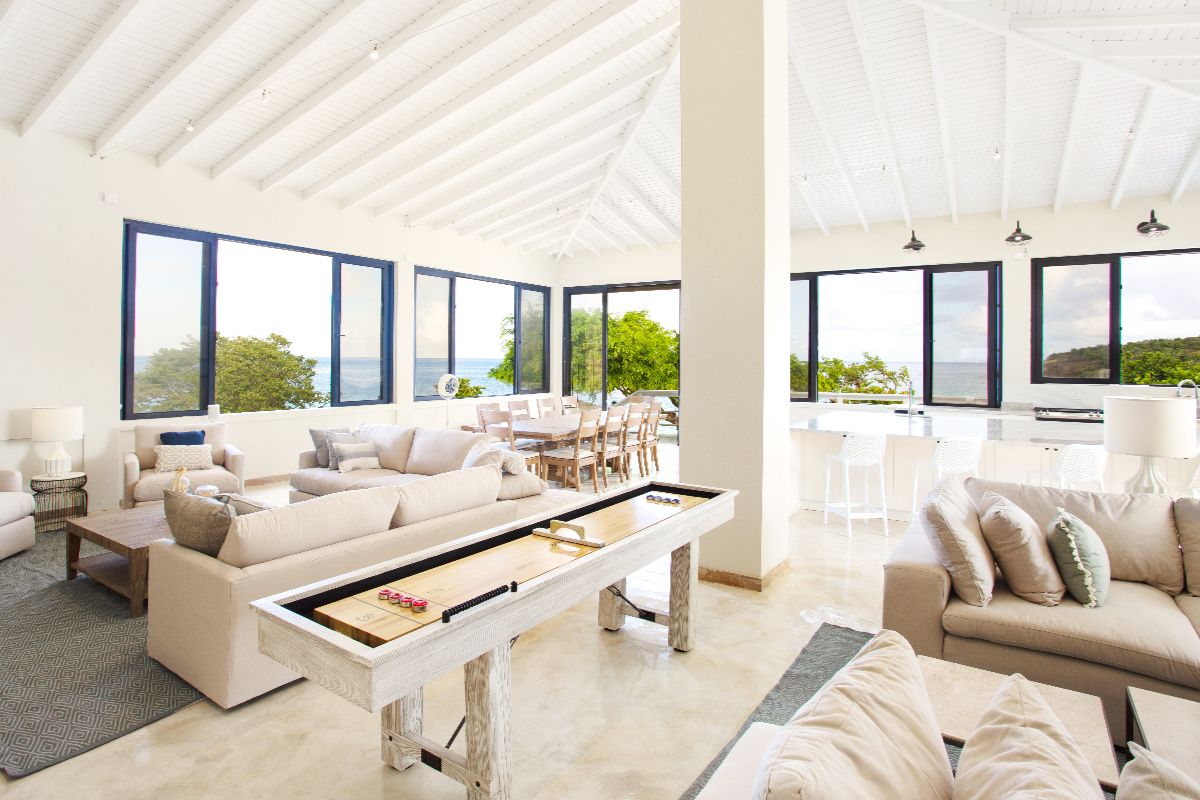 Spanning 2,400 square feet, Sandcastle Beach House combines open, airy interiors with the soothing rhythm of the sea. High ceilings, spacious living areas, and panoramic ocean views set the tone for a stay defined by tranquility and style. Whether you’re enjoying cocktails at the island bar, gathering around the ten-person dining table, or simply unwinding in the shade of the outdoor lounge, the villa invites you to slow down and embrace the relaxed pace of island life.