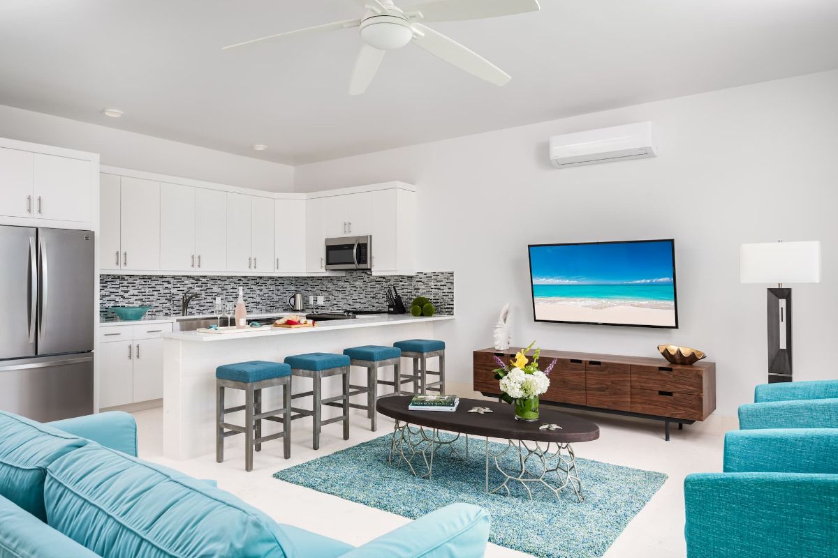 With soft white sand at your doorstep and calm, clear waters just steps away, the setting is ideal for both relaxation and exploration. Turtle Cove Marina, with its restaurants, bars, and excursions, is also nearby, offering a convenient balance between seclusion and accessibility.