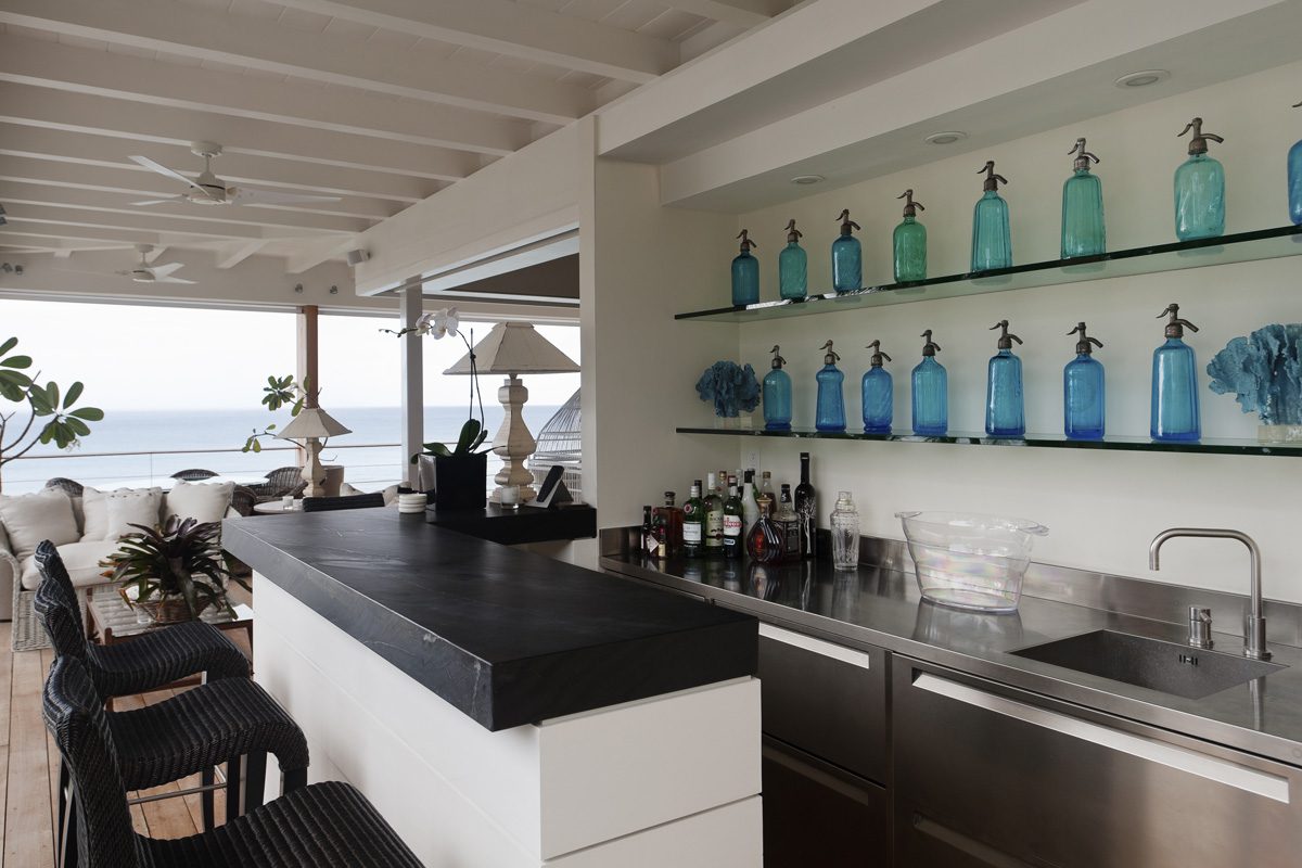 The interior space is light and airy with living rooms, media room, pool table and a second-story balcony that offers spectacular sea views. The fully equipped kitchen is staffed with both a chef and butler service.